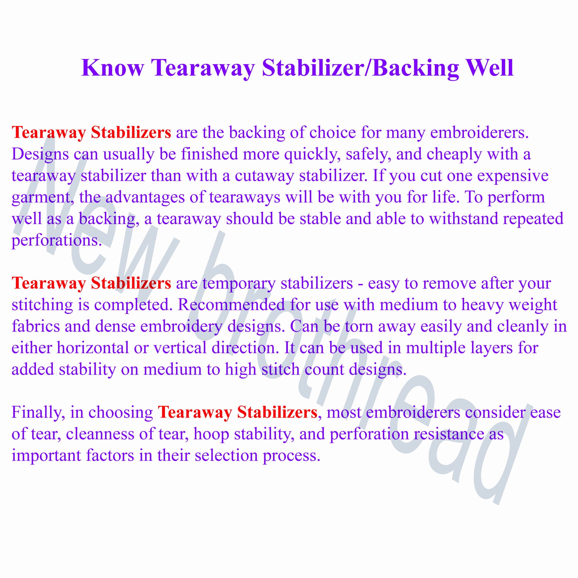New brothread Tear Away Machine Embroidery Stabilizer Backing- Medium Weight 1.8 oz