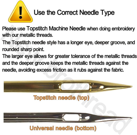 For the last area, during embroidery, metallic thread is moving back and forth fast through the eye of your needle, so their surface will also rubbed against the needle during this process. Under such a situation, it is necessary to apply a needle with a larger eye.