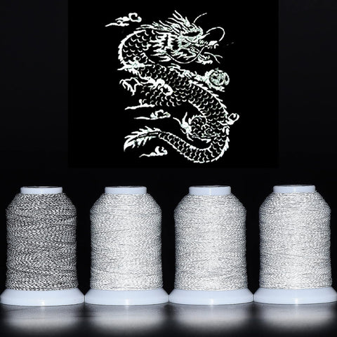 A special embroidery machine thread which will reflect strongly under light in dark.