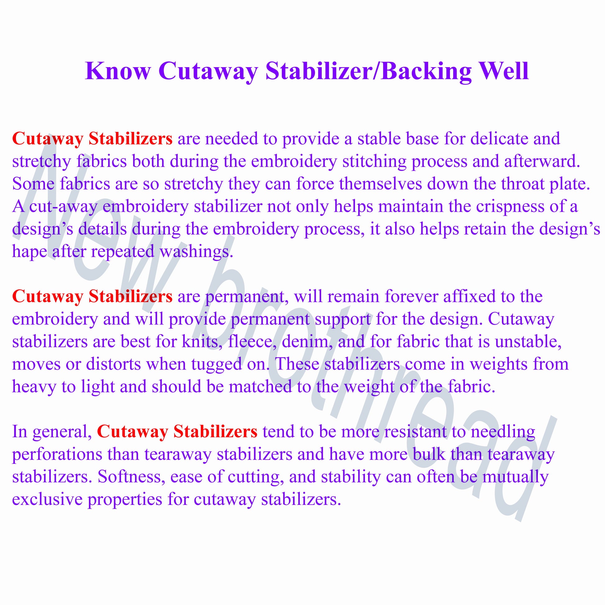 • ▶PERMANENT STABILIZER: It is a permanent stabilizer will remain forever affixed to the embroidery and will provide permanent support for the design, it also helps retain the design's shape after repeated washing.