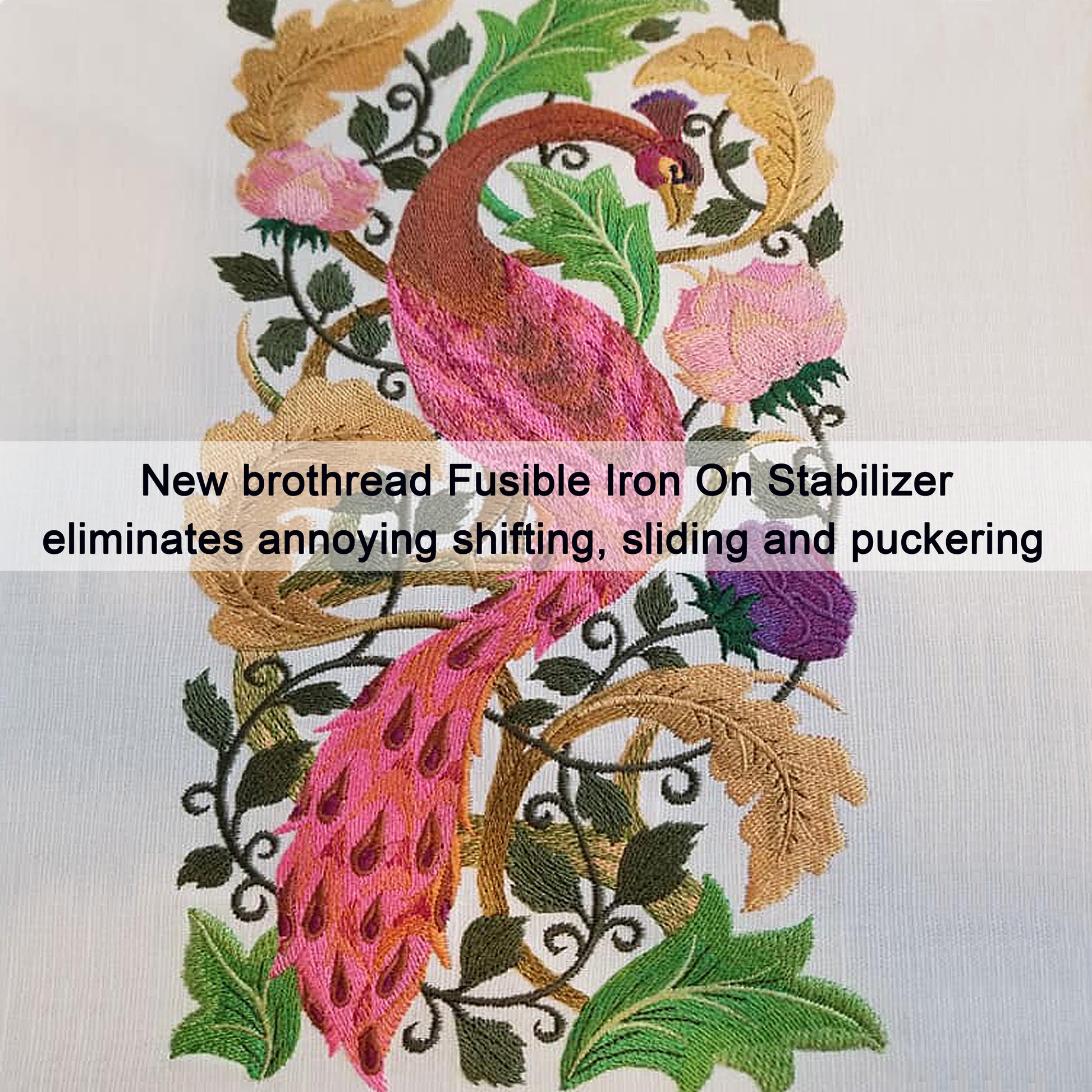 • ▶WIDE APPLICATIONS: It's permanent fusible iron on cutaway stabilizer, it affixes to the embroidery and permanently support the design. It retains the design's shape after repeat wash. Best used on knit, fleece, denim and fabric that is unstable, moves or distorts when tugged on. Great for hoop embroidery, applique,thread stretch,computer lace embroidery and decorative stitch sewing. Be helpful when you make embroidery on a small area design, but can't hoop the fabric and stabilizer together.
