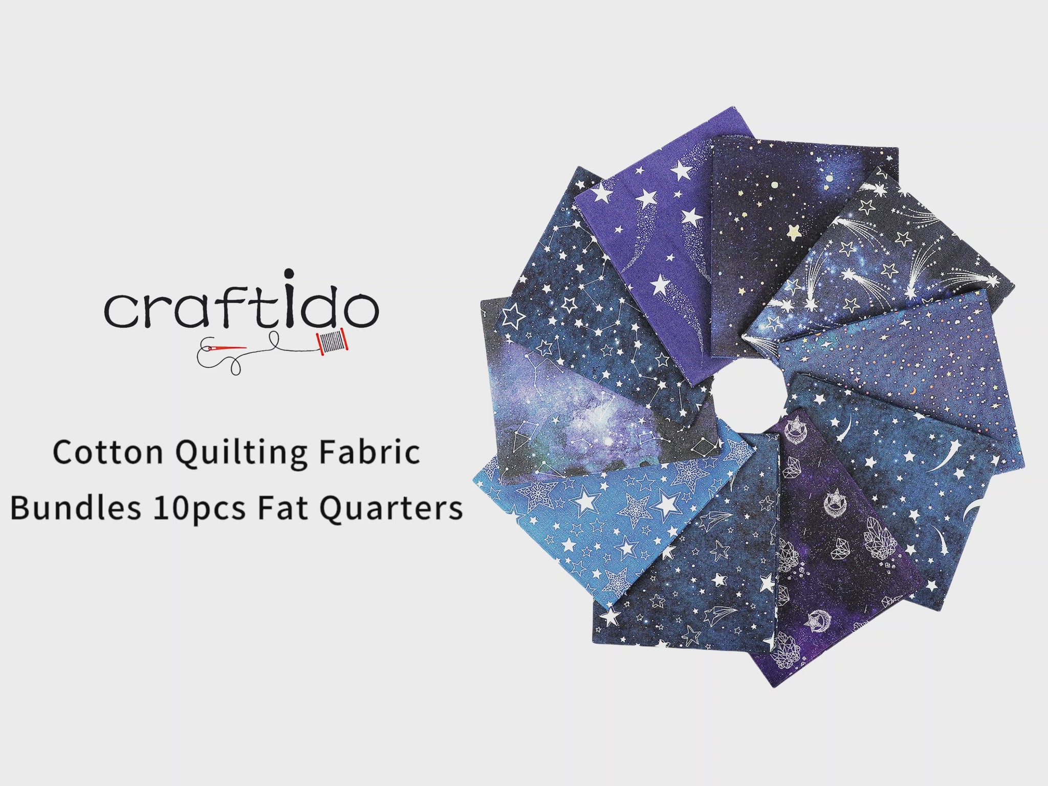 Craftido -25 Options- 100% Cotton Quilting Fabric Bundles 10pcs Fat Quarters 18”x21”-Medium Weight 5.2 oz- for Quilting, Sewing Project, Patchwork, DIY Crafts