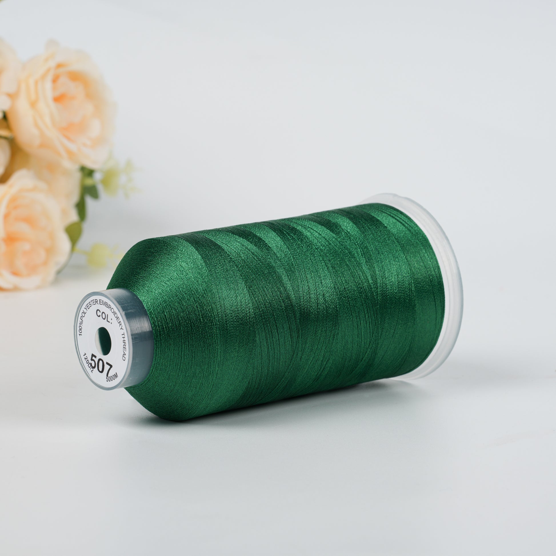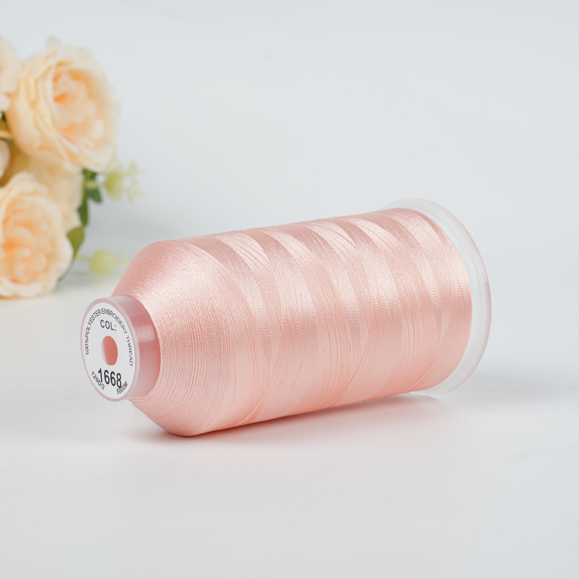 2. Each spool contains 5000M (5500Y) of 40 W.T. thread (120D/2). The large capacity can support long time using, making it an ideal choice for many commercial, industrial and home-based embroidery machines.