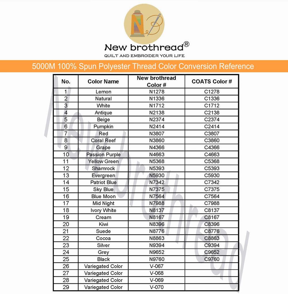 Tips: We have two color assortments. One is from Brother color assortment, the other is from Janome color assortment. They have different color shade even they can convert with each other using conversion chart. The color with N is from Janome color assortmet, the color without N is from Brother color assortment.