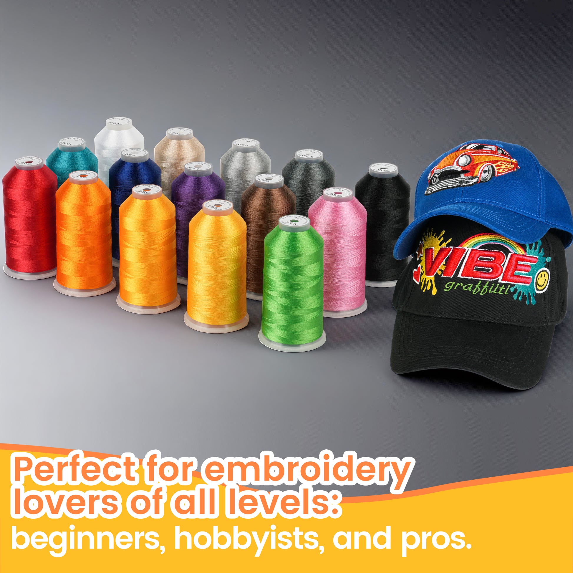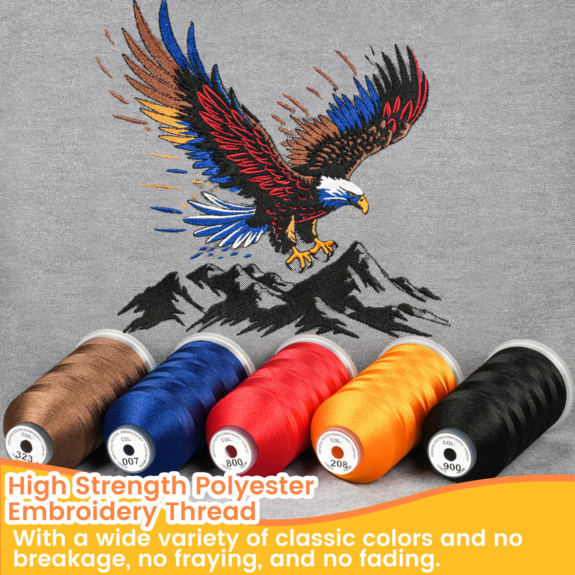 • ★★ Superior Strength & Durability:Our embroidery thread is made of 100% polyester, offering exceptional colorfastness, high strength, and a brilliant, lasting shine — perfect for adding vibrant, professional-quality finishes to all your embroidery projects.