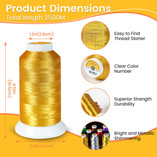 New brothread Single Huge Spool Metallic Embroidery Machine Thread 2500M (2735Y) Each for Commercial and Domestic Embroidery Machines