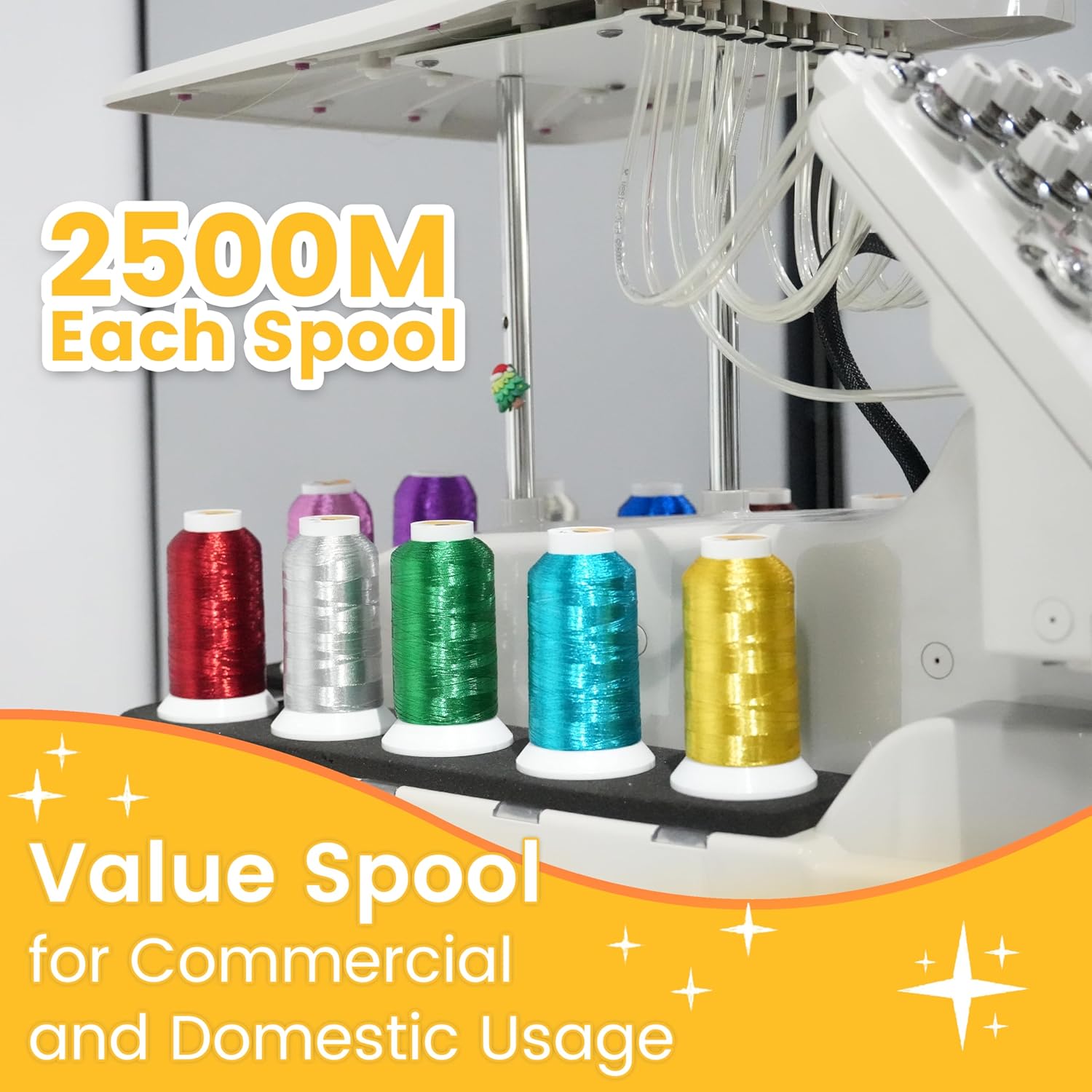 ★Ideal Weight and Huge Spool - Each Spool is 40 W.T. in thickness and 2500M (2735Y) in length, which makes these big spools ideal for All Embroidery Machines including Home based, Semi-industrial, Industrial and Commercial Embroidery Machines. (Note: Works together with a thread stand for feeding thread for a home based embroidery machine)