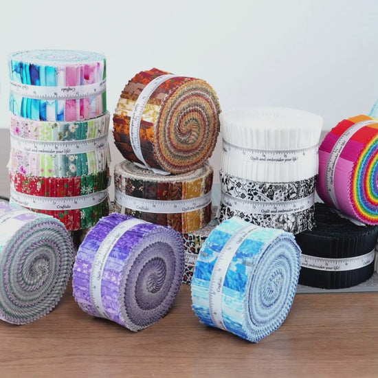 Craftido-18 Options-100% Cotton Jelly Roll Fabric Precut Strips for Quilting, Crafting, and Sewing, 40 Strips 2.5" x 44" Assorted Bundles for Rug, Quilt Project, DIY Craft and Home Decor